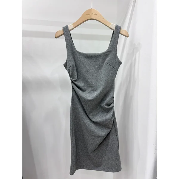 Antinglu 2025 Summer New Spicy Girl Strap Cotton Dress Irregular Wrinkle Square Collar Strap Bag Hip Skirt (H)